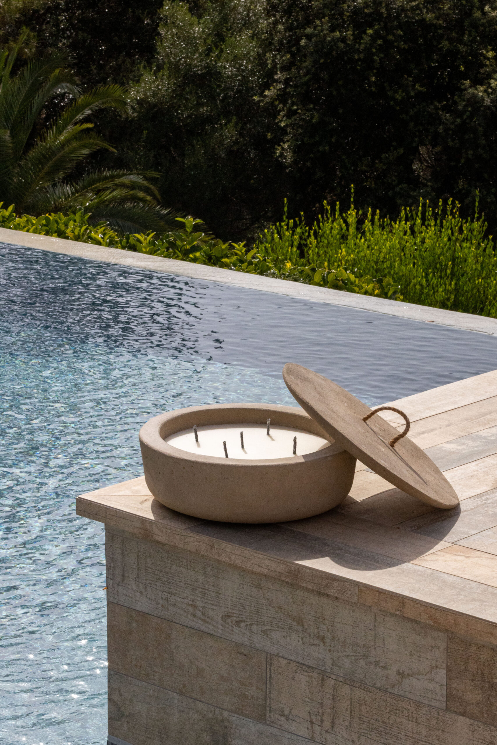 Rankų darbo betoninė lauko žvakė, skirta naudoti tik lauke. XXXL žvakė taip pat turi rankomis lietą betoninį dangtelį.